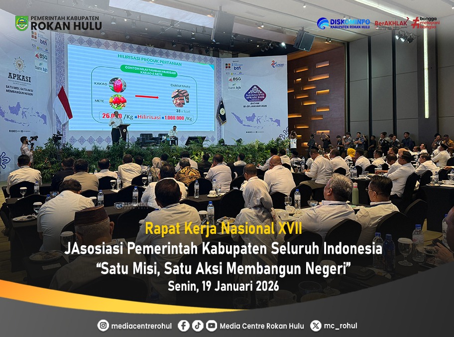 Paber News – Bupati Rokan Hulu (Rohul), Anton, ST, MM, menghadiri langsung Rapat Kerja Nasional (Rakernas) Asosiasi Pemerintah Kabupaten Seluruh Indonesia (APKASI) ke-XVII tahun 2026. Acara yang mempertemukan para kepala daerah se-Indonesia ini digelar di Grand Lotus Ballroom Hotel Aston Batam, Kepulauan Riau, Senin (19/1/2026).