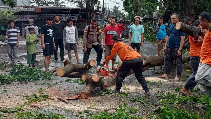 Dia mengatakan anggota dan warga kerja bantuk menyingkirkan pohon tumbang jenis matoa dan angsana. Dia mengatakan tak ada korban dan kerugian materiel dalam peristiwa tersebut.