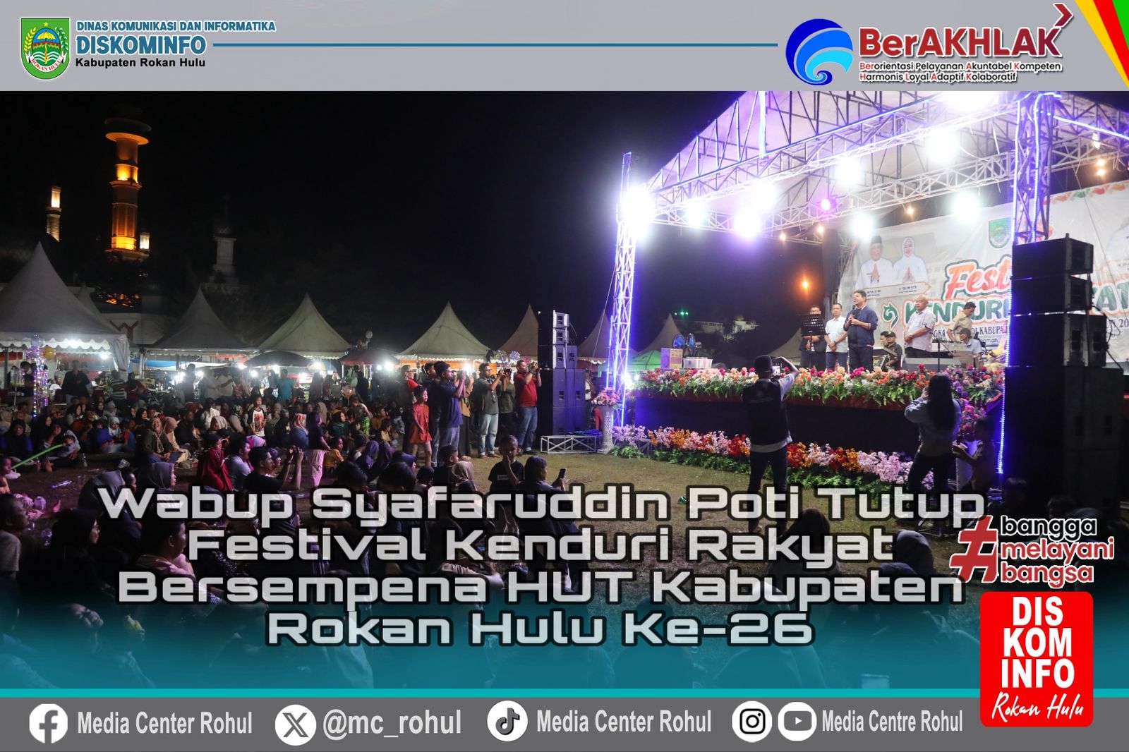 Penutupan Festival Kenduri Rakyat menjadi puncak dari rangkaian perayaan HUT ke-26 Kabupaten Rokan Hulu, yang mengusung semangat kebersamaan, pelestarian budaya, dan kemajuan daerah menuju Rohul yang lebih maju dan berdaya saing. (Riski/Adv/Kominfo).